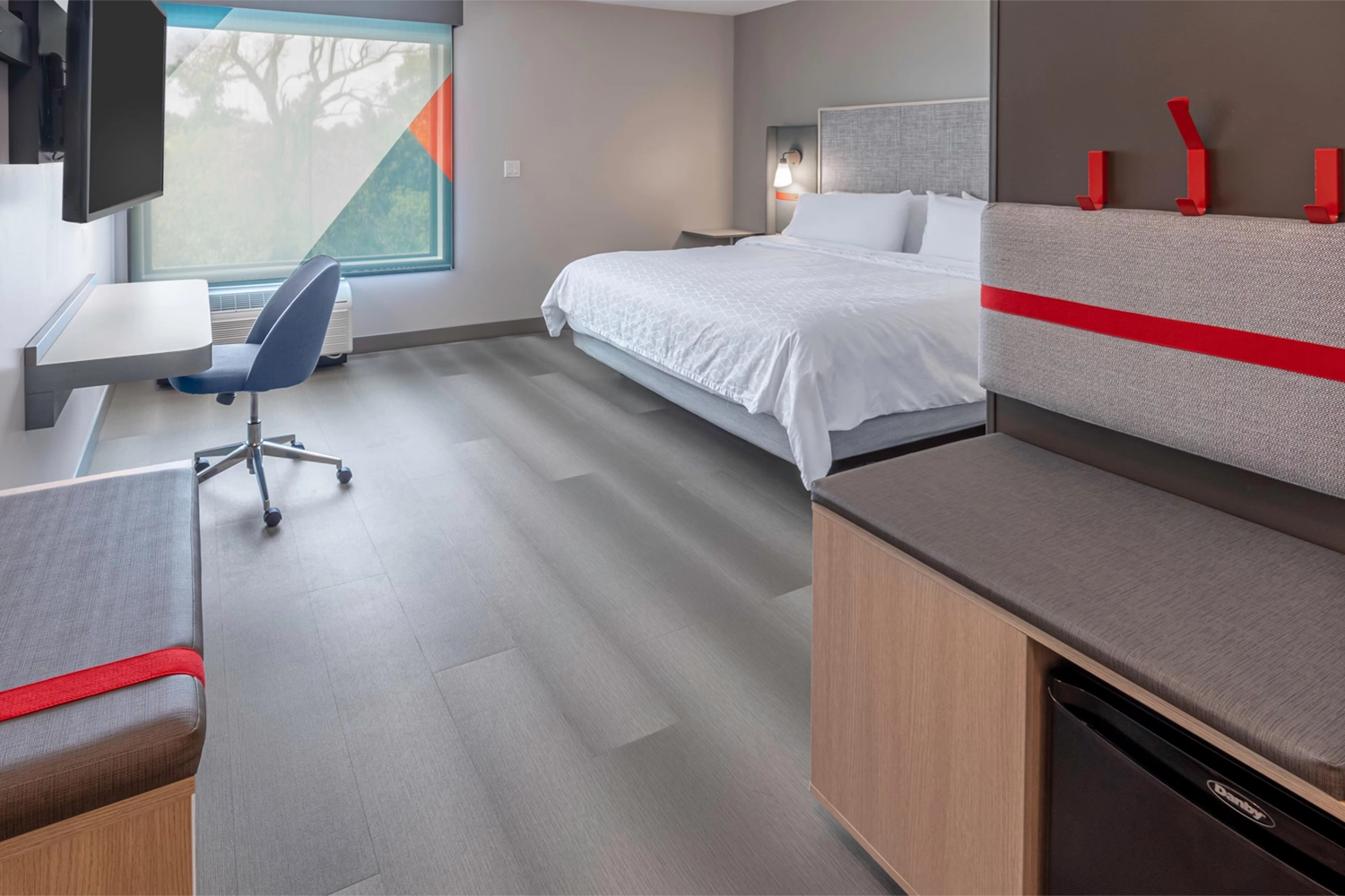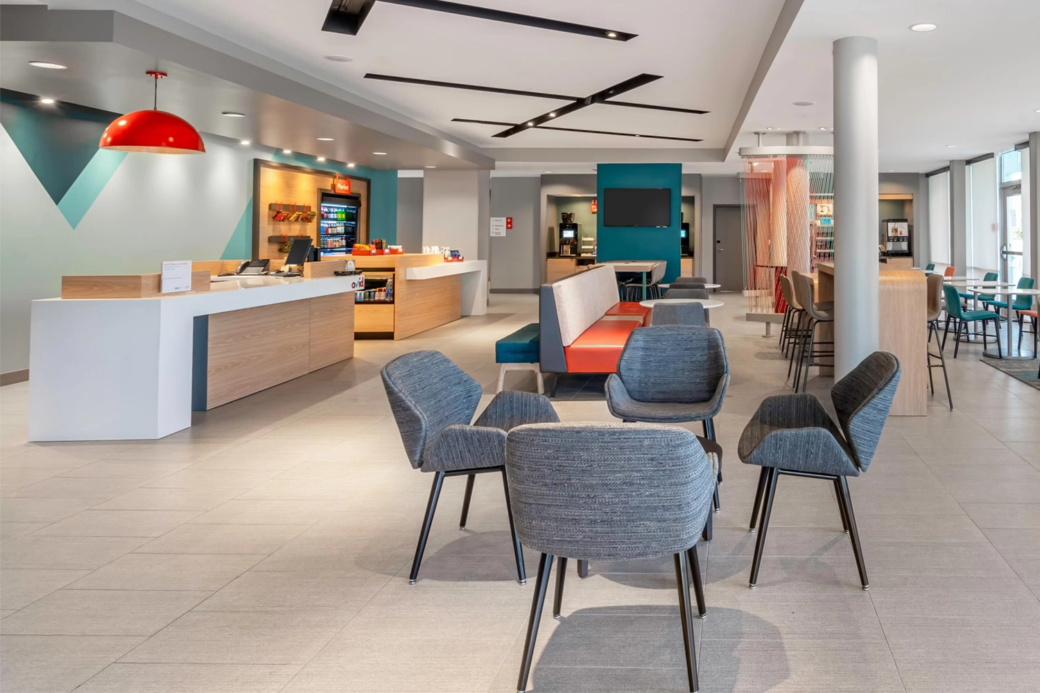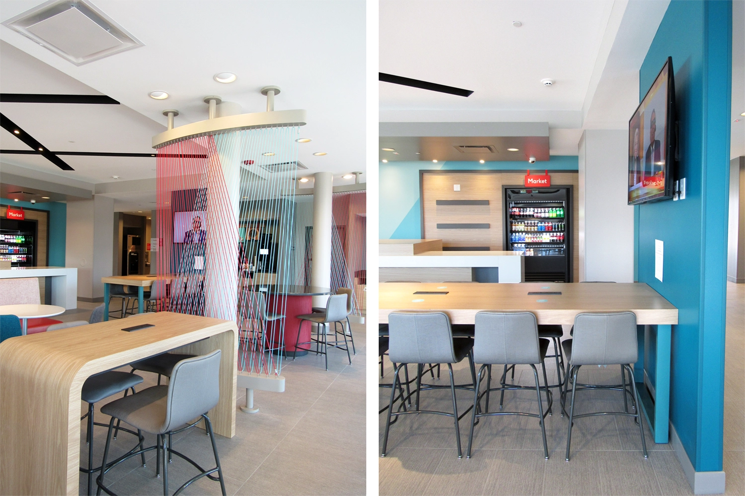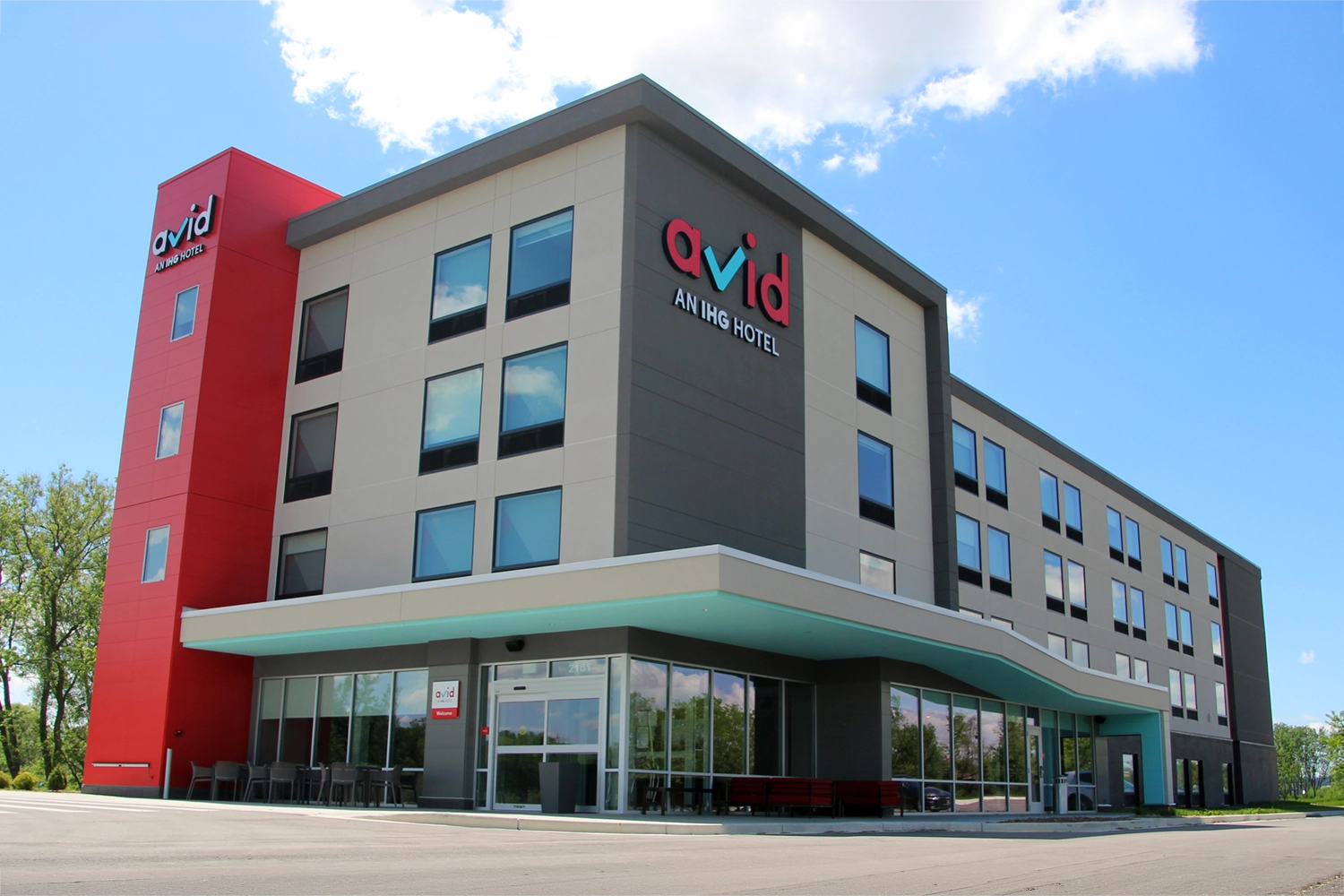 Features of the avid™ include a hip-and-modern lobby with computer/internet access, a 24-hour integrated marketplace, a complimentary breakfast dining area, and a 400 SF fitness center.