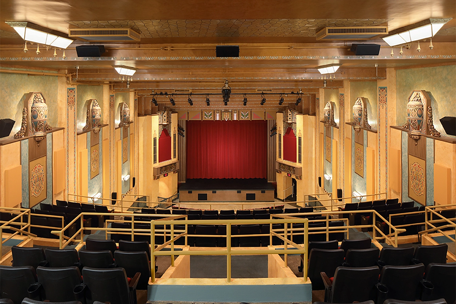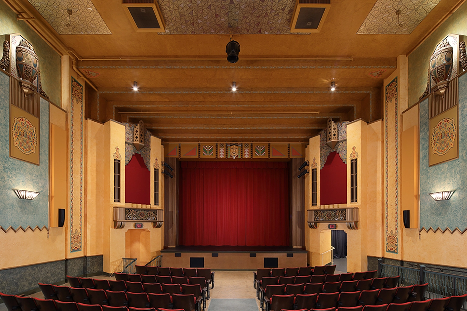 The renovation included comprehensive building system upgrades, seamlessly integrating modern electrical, plumbing, HVAC, and audio-visual infrastructure within the historic structure. One of the most significant achievements was the meticulous restoration of original artwork, including the vibrant colors and intricate detailing on the walls, proscenium arch, and ceiling. Through DESIGNBUILD delivery, the project breathed new life into the theater—preserving its historic character while positioning the venue to serve future generations as a functional, welcoming, and culturally significant community asset.