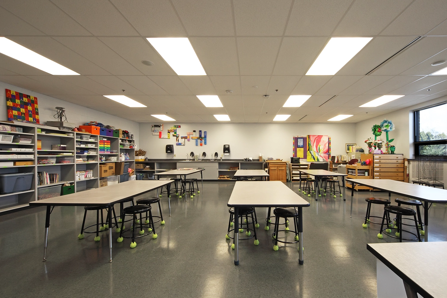 Planning centered on integrating new spaces seamlessly with existing operations. The two-story addition introduced a high-school-sized gym and new classrooms, expanding capacity while enhancing daily functionality for students and staff. At the same time, targeted updates to existing areas of the school refreshed learning environments.