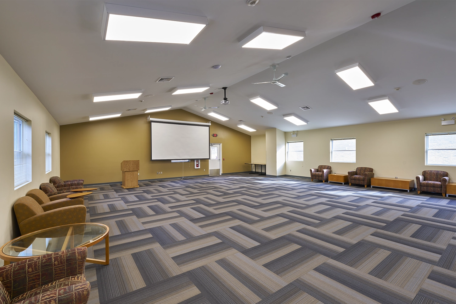 The completed facility was designed to support year-round programming, training, and community gatherings. Throughout preconstruction, we worked closely with leadership to align program requirements for a wide range of skill-building and recreational spaces, including an indoor archery range, welding lab, automotive bay, and woodworking shop that also functions as a storm shelter. The second floor features a large multipurpose room with an adjacent kitchen and direct access to an expansive deck, creating flexible space for both structured activities and informal gatherings.