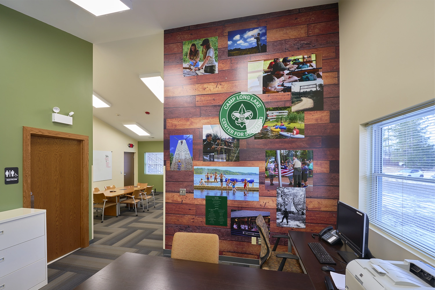 Through our collaborative DESIGNBUILD process, we integrated early planning with cost control and schedule certainty to deliver a facility that strengthens Camp Long Lake’s mission. Bunk rooms, restrooms, and showers provide comfortable accommodations for camp staff, while the adaptable training and event spaces enhance the camp’s ability to host programs, workshops, and community events in support of Scouting for years to come.