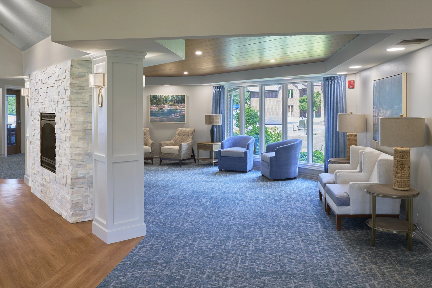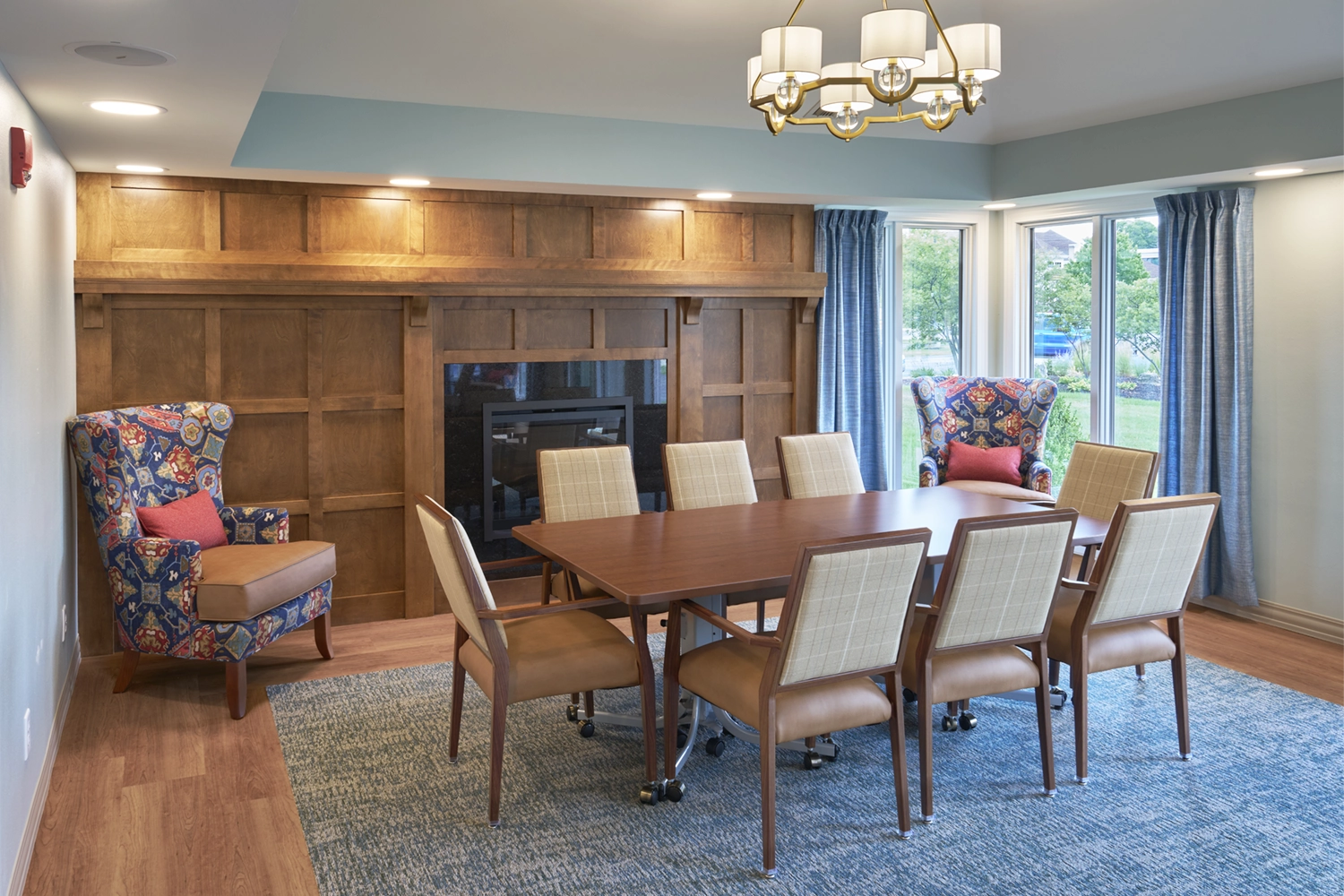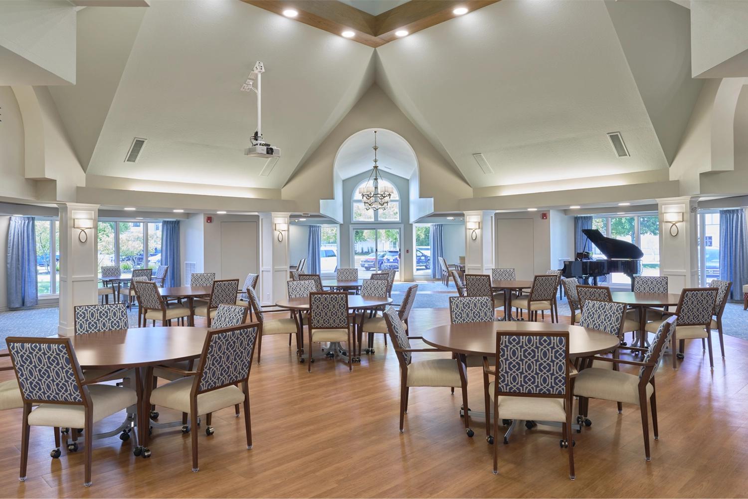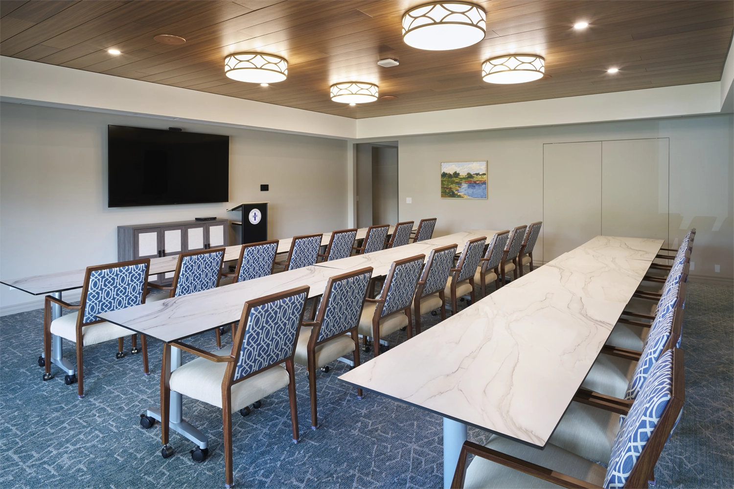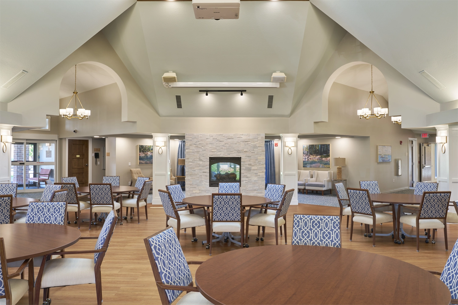 Working closely with stakeholders, our team strategically converted the existing café into a functional meeting and training space designed for adaptability and comfort. Dining, gathering, and lounge areas were refreshed to create a cohesive flow throughout the clubhouse—supporting both everyday use and larger community events. Careful coordination of layout, finishes, and operational needs ensured the new spaces enhance functionality while maintaining a warm, inviting atmosphere.